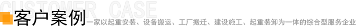 公司以往從事過:冷水機組、發電機組、大型空調、鍋爐、燃氣機、機床、精密儀器、印刷機、干洗機、注塑機、壓力機、配電機組、高層水塔